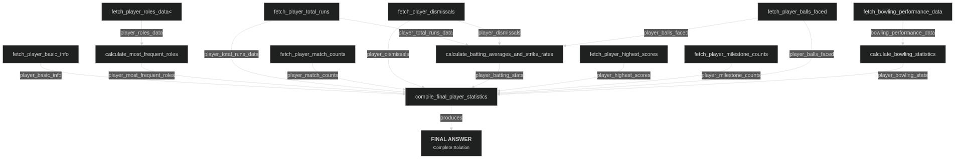 Or they can be quite complicated, such as when asked to summarize complicated aggregation statistics on cricket players that are distributed throughout multiple different tables: